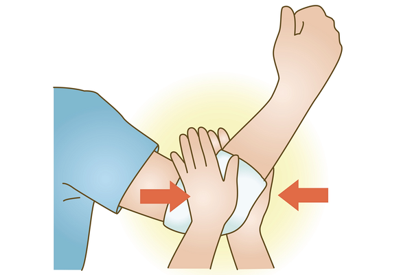 当院では、正しいテーピングで手首の動きを制限し、肘の外側もしくは内側にかかる負担を抑えます。